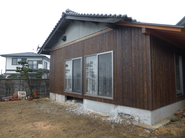 家の方が自分で設置した物干し場をアルミのテラスで新しくしました。 我ながらすごくよくなったと思えます。