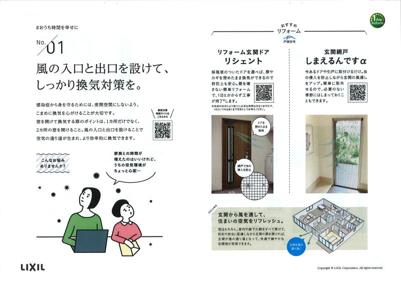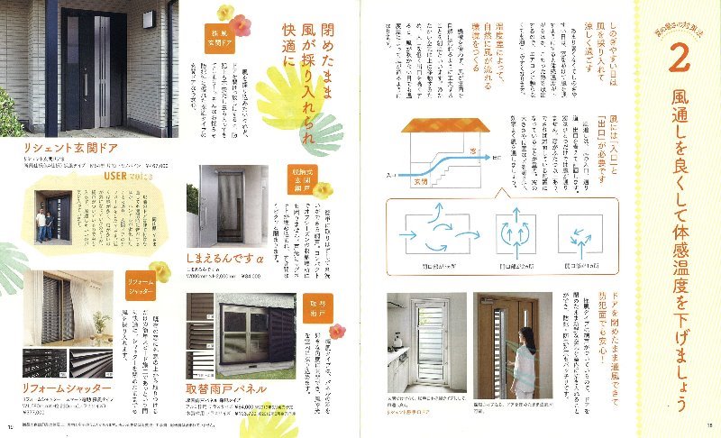 夏の暑さ対策法 その2.風通しを良くして体感温度を下げる! 採風玄関ドア 収納式玄関網戸 取替雨戸 リフォームシャッター 閉めたまま風が採り入れられる...