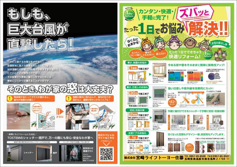 台風による被害が増加しています。 窓まわりを強化し、飛来物の被害を防いで安心! リフォームシャッター 取替雨戸 防犯対策にも効果的です。 暑さや台風な...