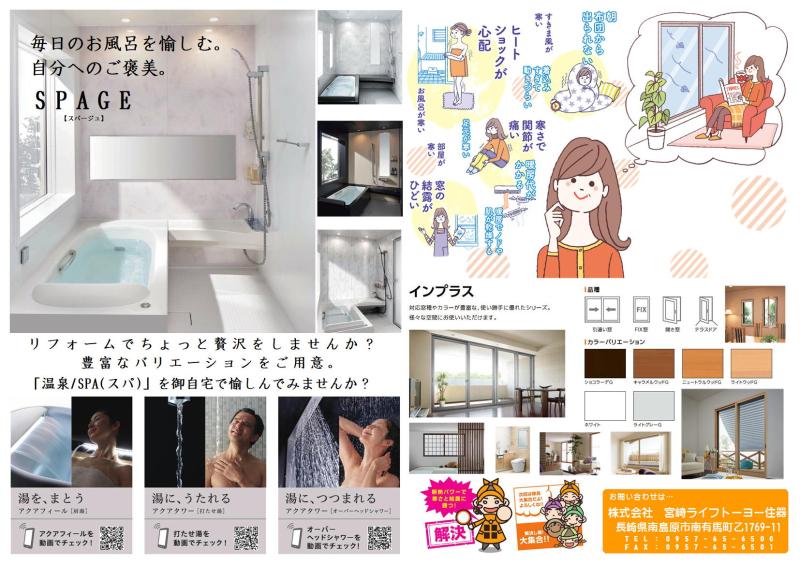 だんだんと寒くなってきた今日この頃 お風呂でゆっくり温まり、リラックスタイムを過ごしてみませんか? その他にも寒さ対策や断熱性アップの為に 窓の交換や...